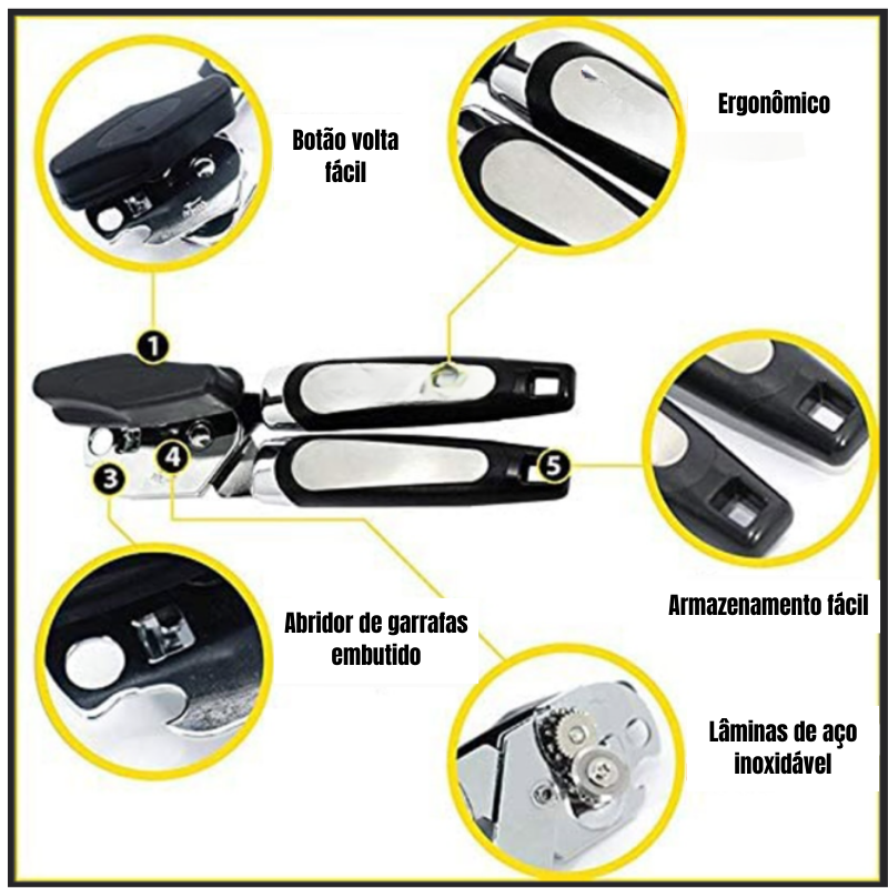 O Abridor Profissional de Latas e Garrafas oferece resistência e longa duração. Seu design conta com uma lâmina afiada e alça ergonômica para permitir a rotação das tampas com facilidade e segurança. Ideal para uso diário em casa ou em restaurantes.