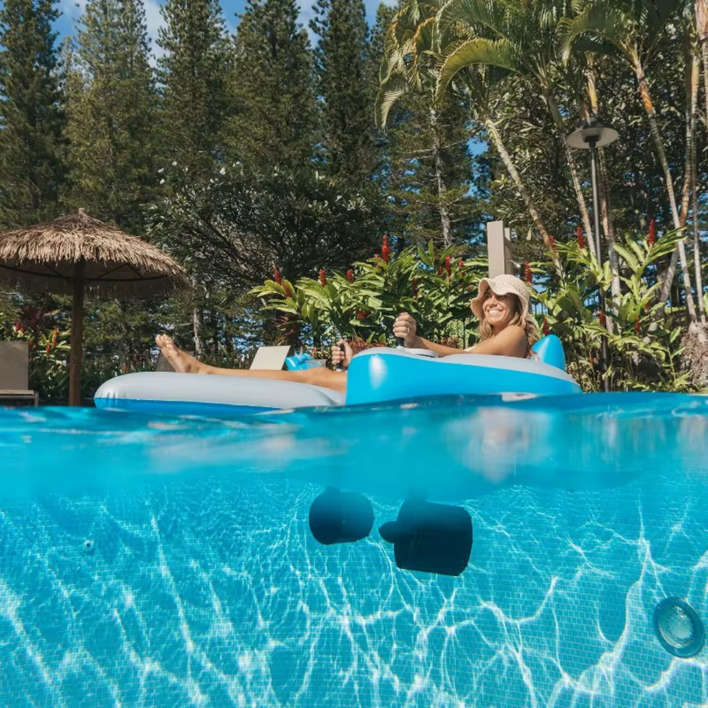 | Rapidez na Água | Basta ligar os motores para deslizar facilmente pela piscina, lago ou rio. |