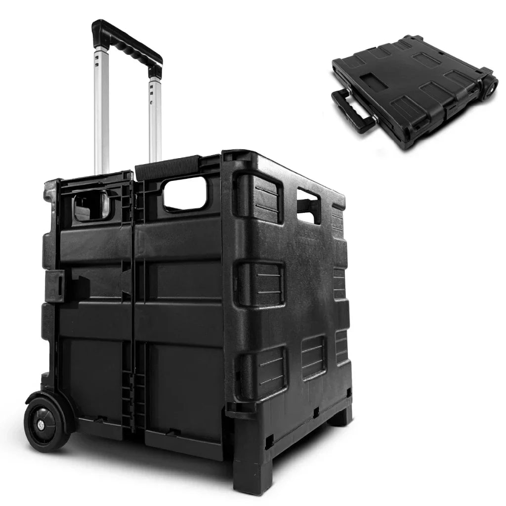 Desenvolvido com materiais de alta qualidade, incluindo alumínio e plástico, o carrinho pode ser dobrado ou desdobrado com um único toque, em segundos . A área de carregamento superior dobrável em 130° facilita o transporte de mercadorias mais altas, proporcionando praticidade. Sua facilidade de transporte e armazenamento fazem do carrinho uma escolha ideal para quem busca eficiência e praticidade.