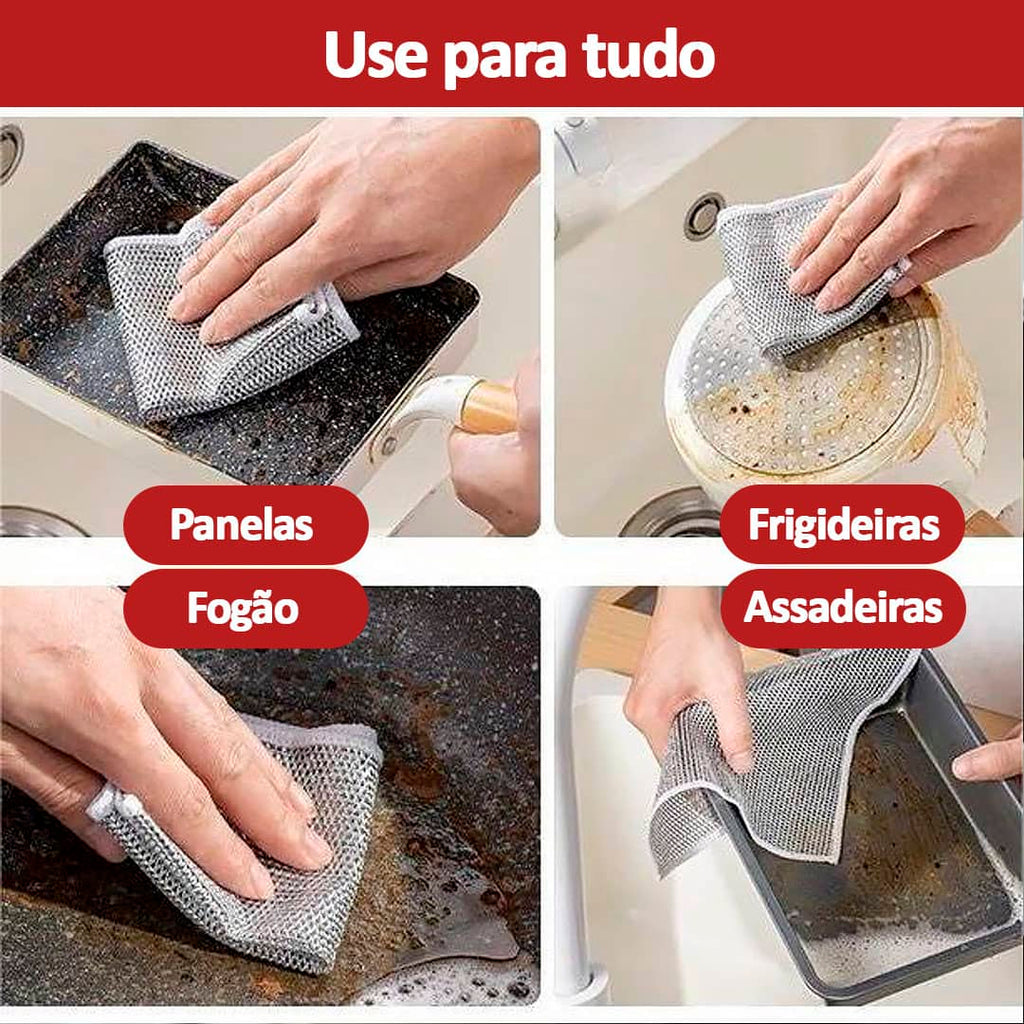 Este pano de aço inoxidável versátil e reutilizável pode ser usado para limpar utensílios de cozinha, carros, eletrônicos, óculos, joias, eletrodomésticos, móveis e muito mais. Com sua eficiência, ele se tornará um item indispensável na sua cozinha.