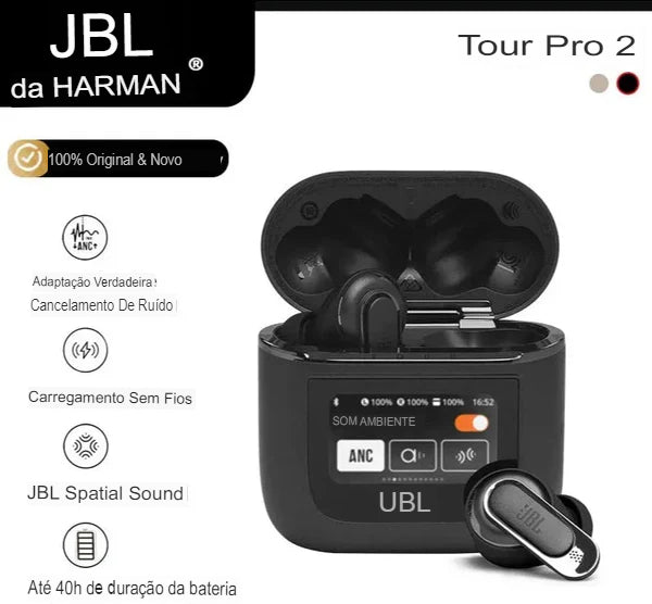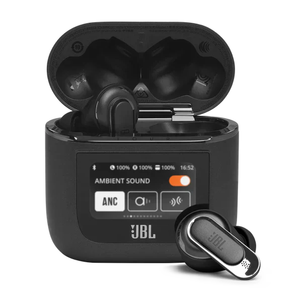 Controle as configurações dos fones de ouvido, gerencie chamadas e reprodução, controle a configuração de áudio e o nível da bateria e defina o alarme sem tirar o telefone, através da tela do estojo de carregamento. Desfrute de uma experiência verdadeiramente perfeita graças ao exclusivo estojo de carregamento inteligente JBL Tour Pro 2 sem usar seu telefone ou o aplicativo JBL Headphones.