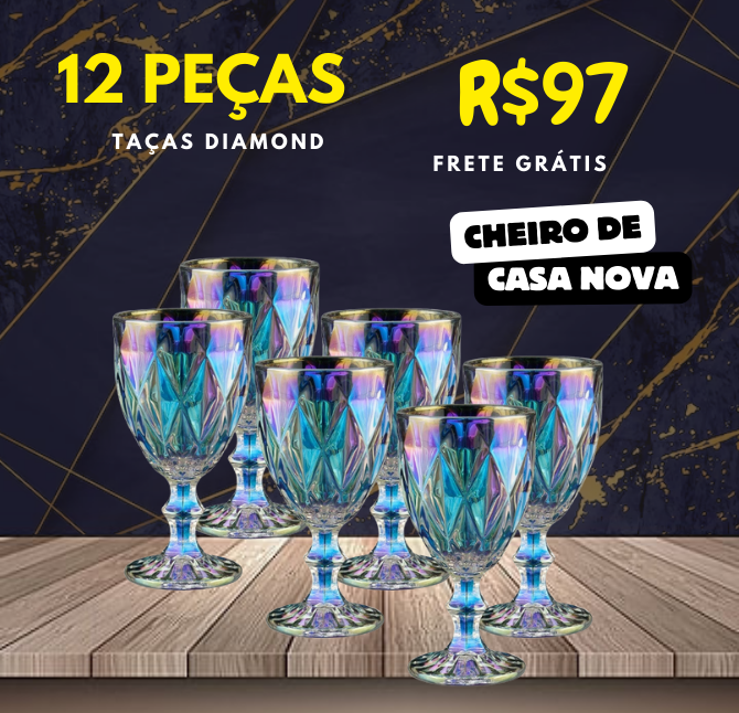 Jogo 12 Taças Luxo Diamond Vidro 320ml