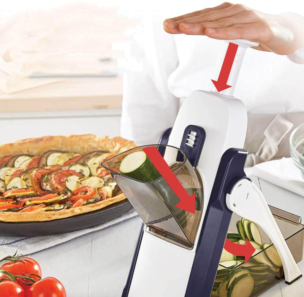 Ampla Aplicação: Este versátil fatiador é projetado para picar todos os tipos de alimentos - cebolas, batatas, cogumelos, pepinos, cenouras, tomates, gengibre, alho, queijo e muito mais.