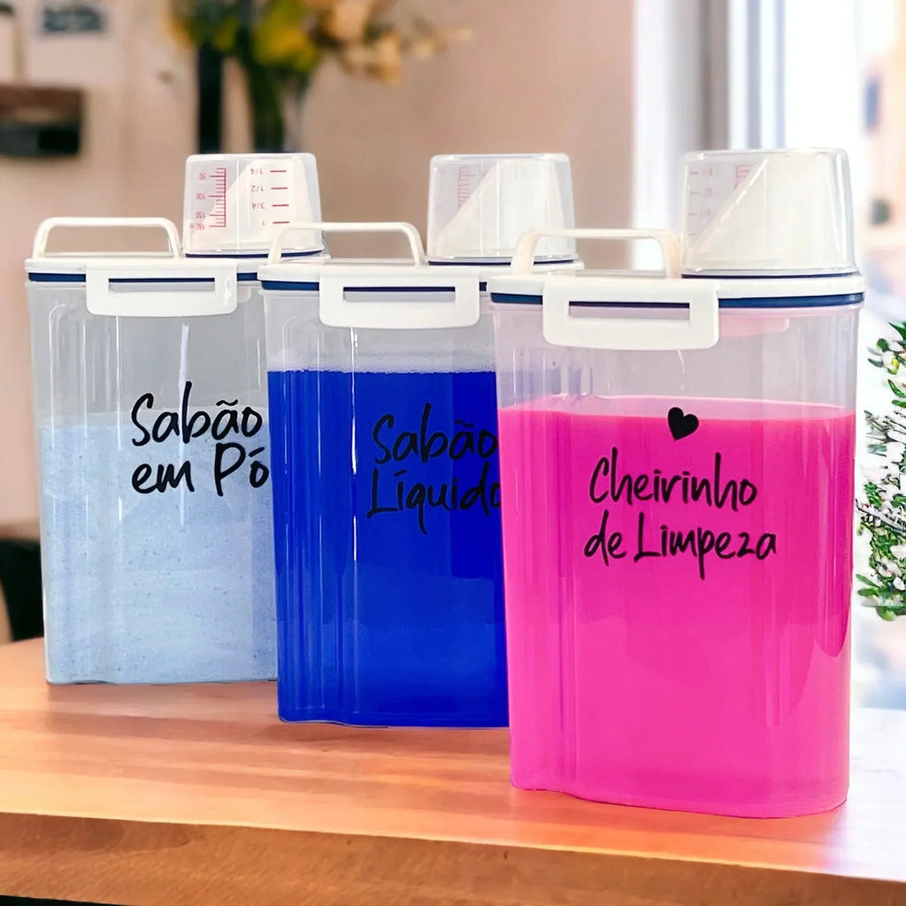O Dispensador Líquido Hermético para Lavanderia é a solução ideal para manter detergentes, amaciantes e sabão em pó organizados e sempre à mão.