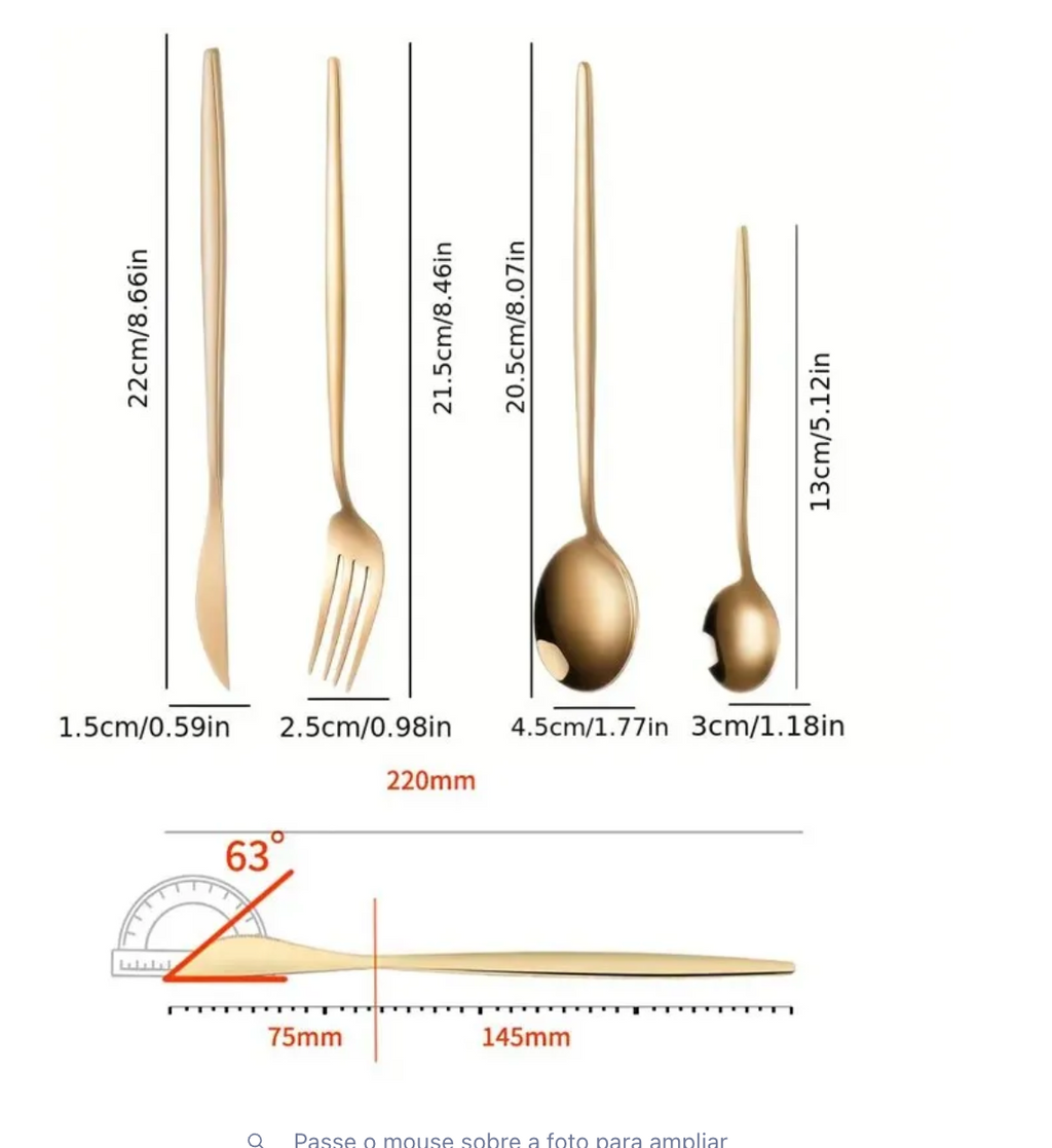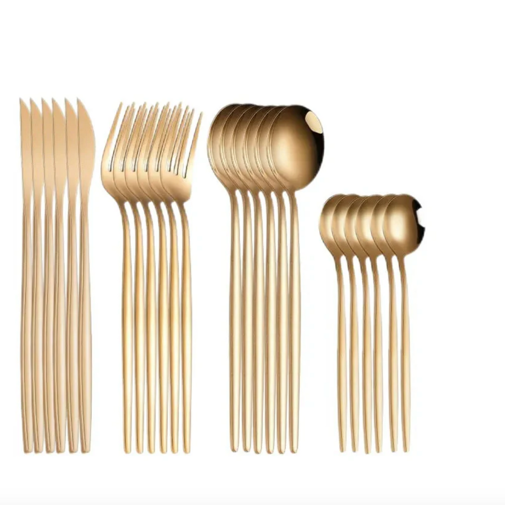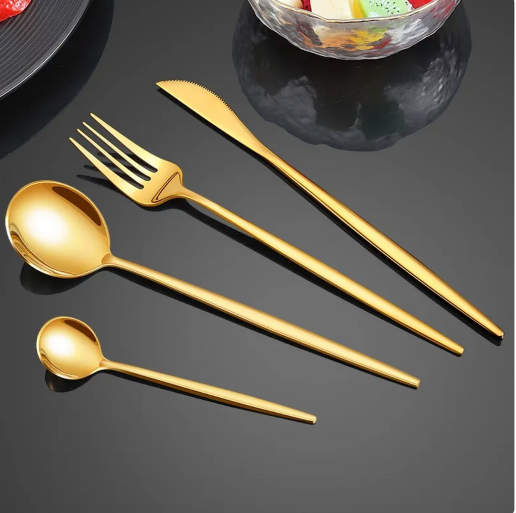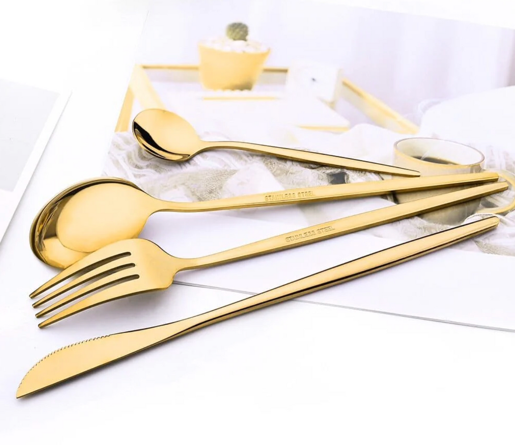 Feitos de aço inoxidável de alta qualidade, os Talheres Gold Glamour Premium são altamente resistentes e antiferrugem, diferente de materiais inferiores que descascam nas primeiras lavagens.