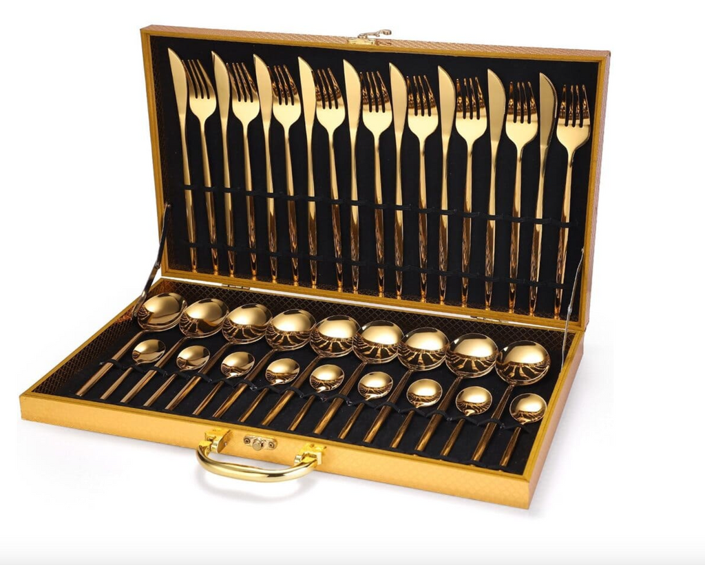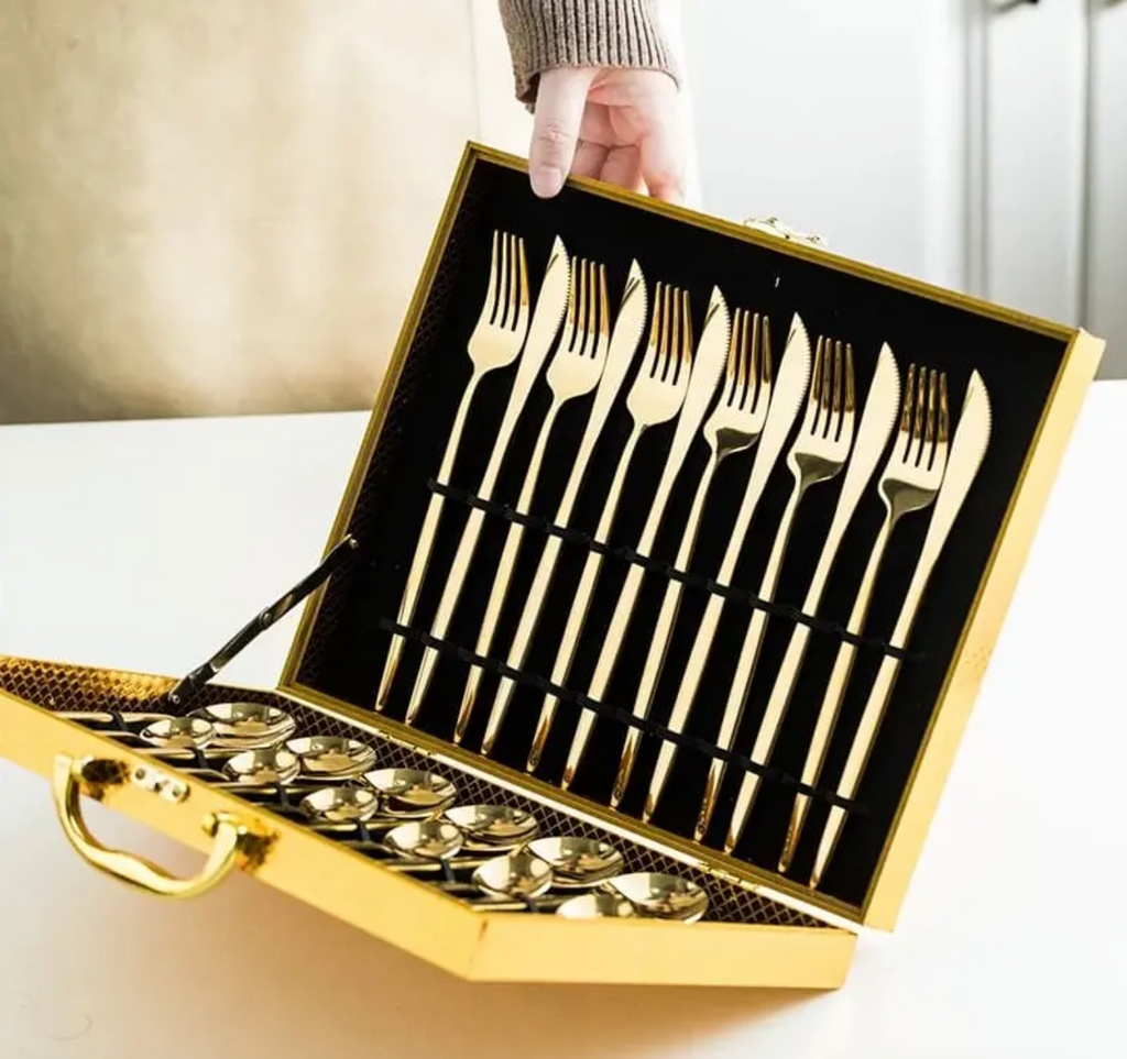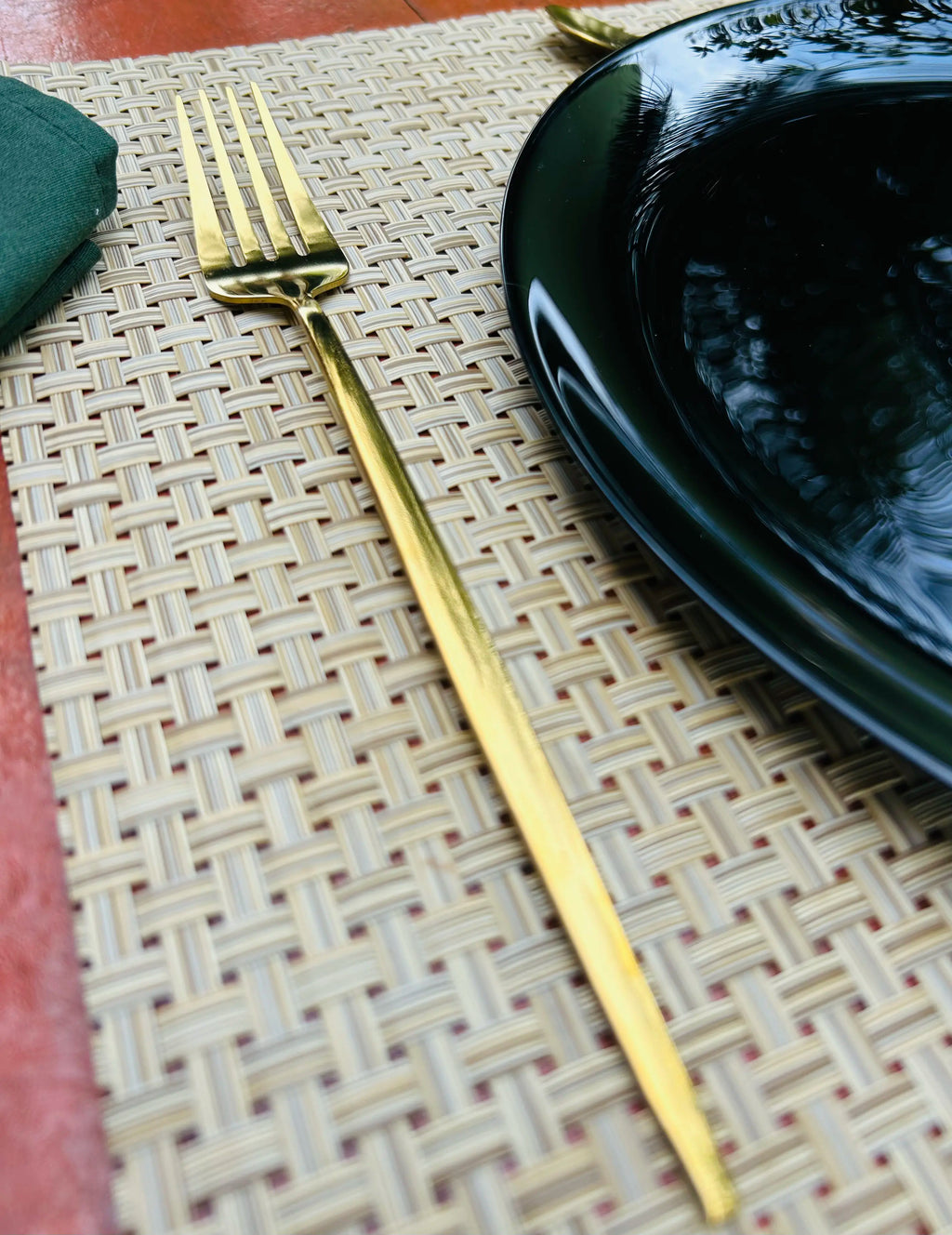 Feitos de aço inoxidável de alta qualidade, os Talheres Gold Glamour Premium são altamente resistentes e antiferrugem, diferente de materiais inferiores que descascam nas primeiras lavagens.