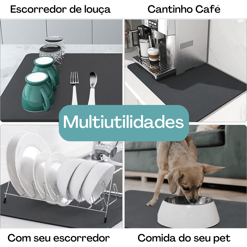 Feitos com material tecnológico altamente absorvente, este tapete consegue absorver qualquer tipo de liquido com muita rapidez e facilidade, mantendo sua pia sempre seca e arrumada.
